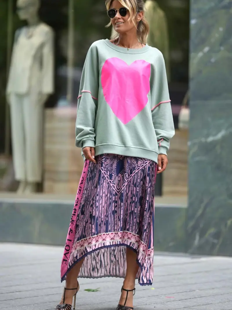 Hoodie Heartface Cherry Love Strass - grey