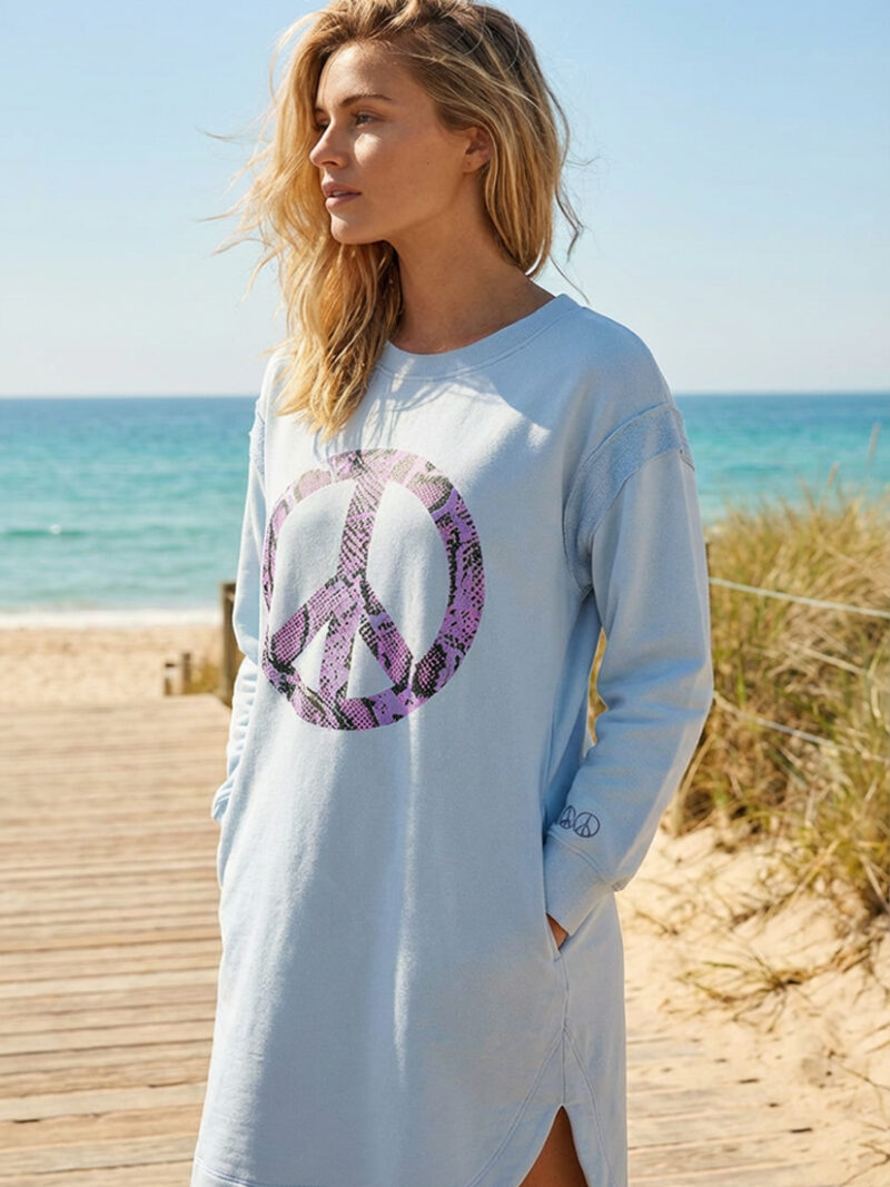 Roundneck long Peace - smokey blue