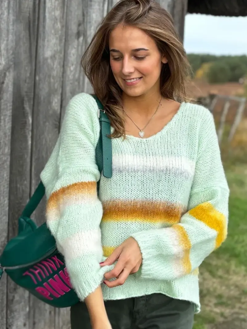 Pullover gebrushed mit multicolor Stripes - mint
