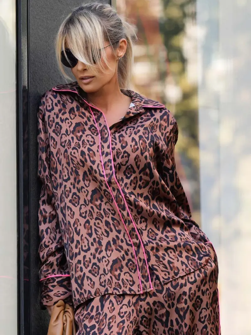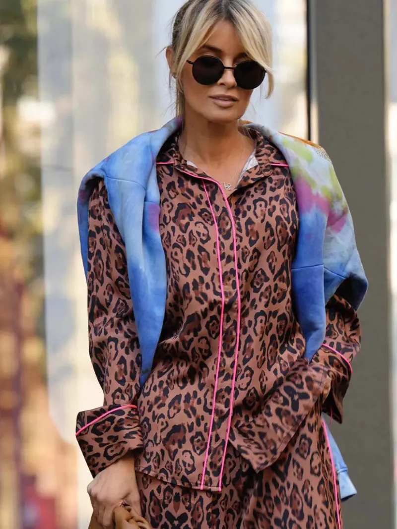 V-Neck T-Shirt Palmtree Paillette - lightblue