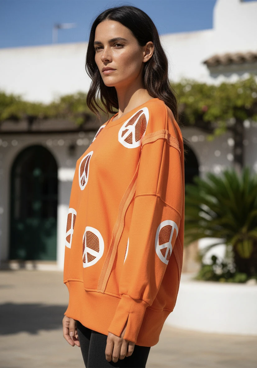 Leveä rauhanstrassi pyöreäkauluksinen – neonoranssi