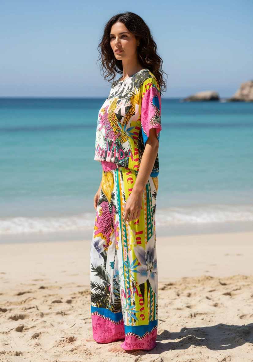Denne løstsittende toppen har et slående trykk. De livlige fargene gir utseendet en sommerlig friskhet. Takket være det flagrende stoffet og den komfortable passformen er den den perfekte følgesvennen til avslappede og stilige antrekk.