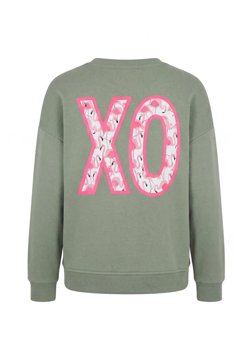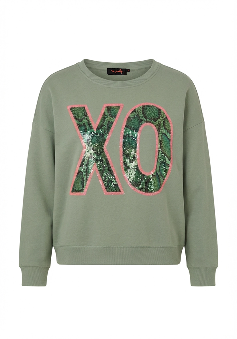 Moletom estiloso com gola redonda e uma estampa frontal marcante em grande escala com lantejoulas brilhantes. Os punhos largos garantem um ajuste confortável. Uma estampa ousada em grande formato nas costas completa o design.