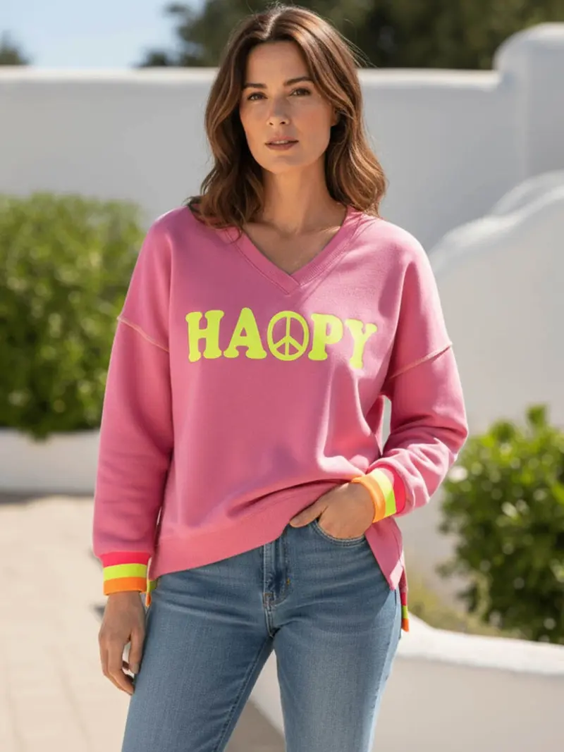 V-Neck Happy Peace - flash rose