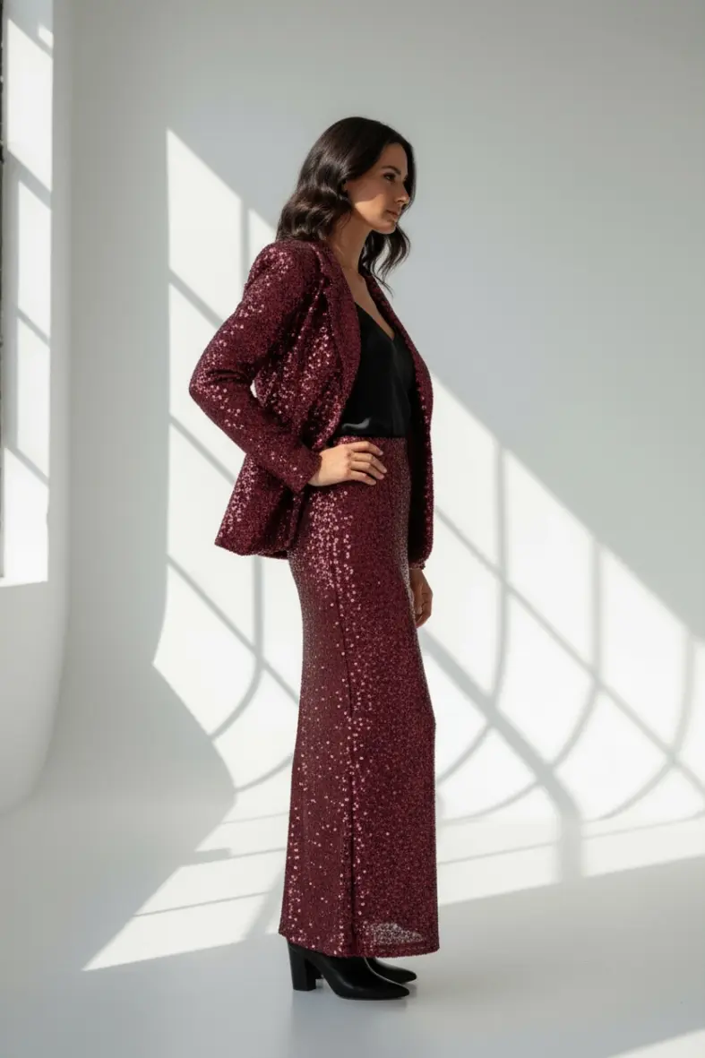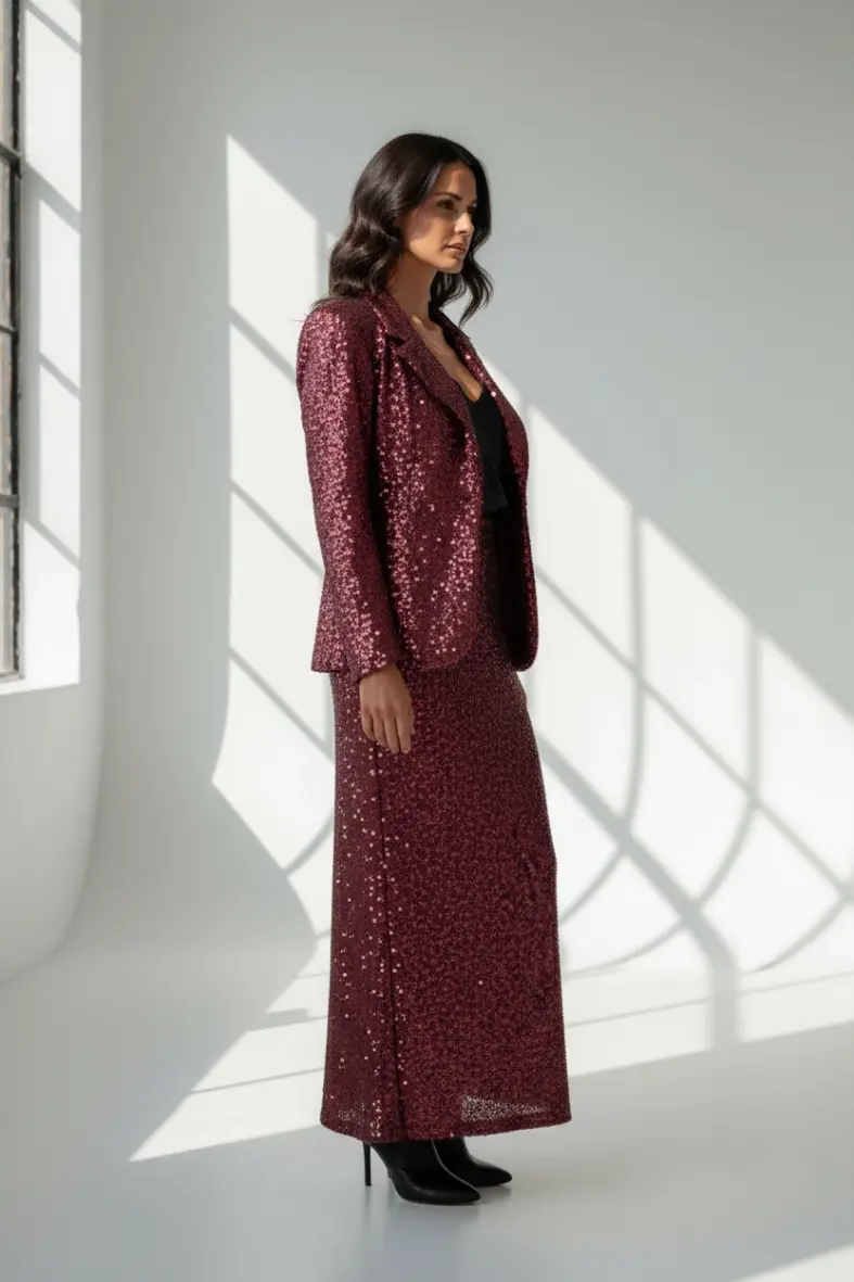 Bordeaux Sequin Blazer – burgundy