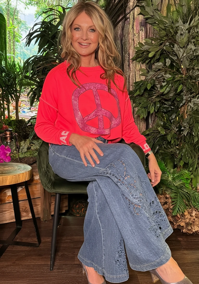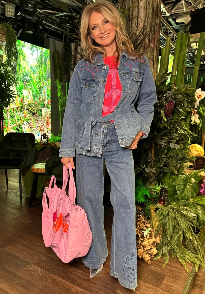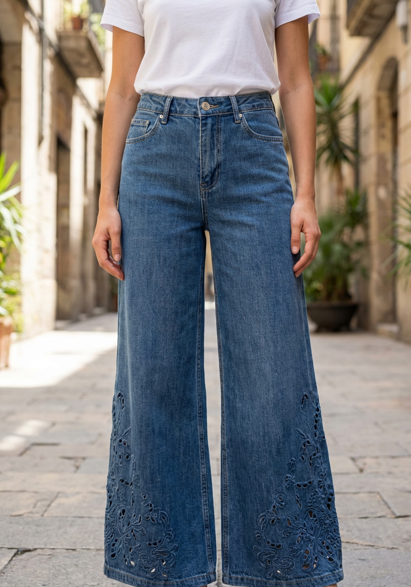 Wunderschöne Jeans im klassischen 5-Pocket-Style in blauer Stonewashed-Optik. Das ausgestellte Bein im Relaxed Fit sorgt für eine lässige Passform. Die Lochstickereien am Saum verleiht dem Design einen wunderbar romantischen Touch.