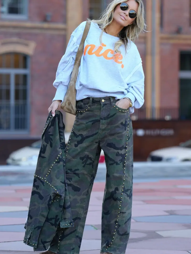 1 × Roundneck Sweater Wide Nice - hellgrau