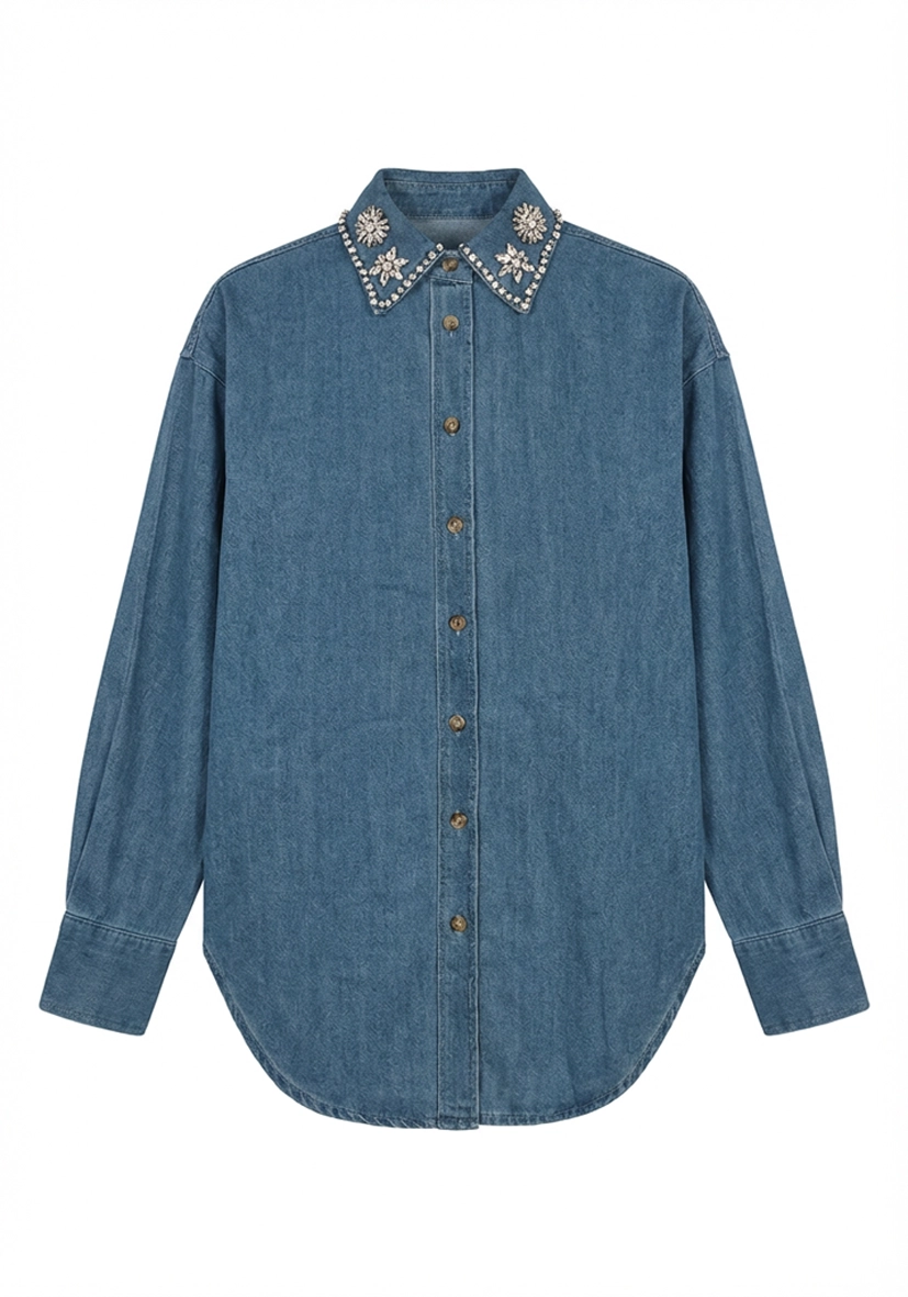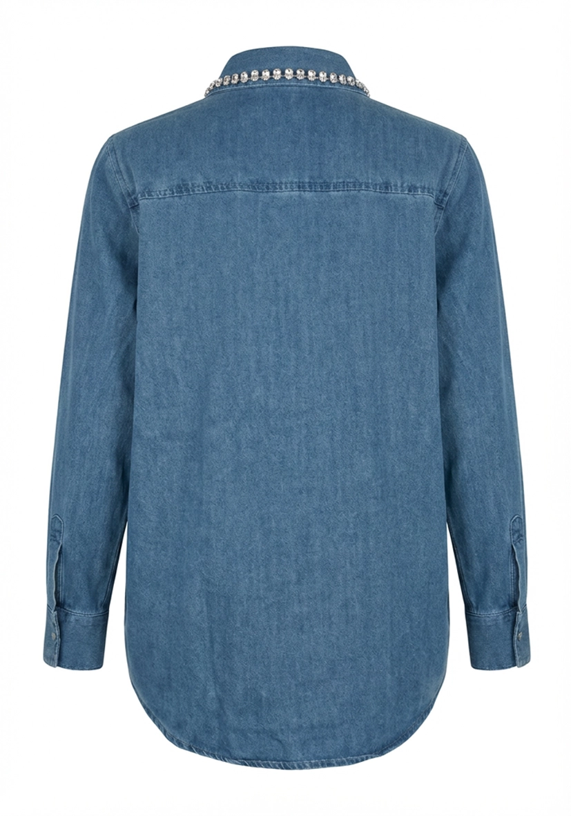 Dieses Jeanshemd wird durch den aufwendig verzierten Kragen zum echten Hingucker. Der weiche Denim sorgt für ein angenehmes Tragegefühl und einen lässigen Fit. Perfekt für stylische Alltagslooks mit einem besonderen Detail.