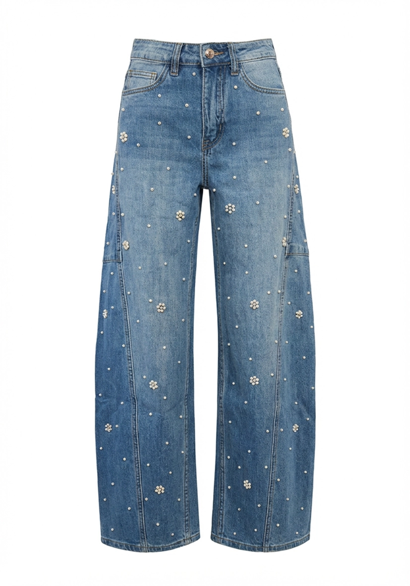Diese Jeans überzeugt mit einer lässigen Silhouette und einer klassischen blauen Waschung. Besondere Hingucker sind die Perlen-Applikationen. Perfekt für stylische Casual-Looks mit einem individuellen Twist.