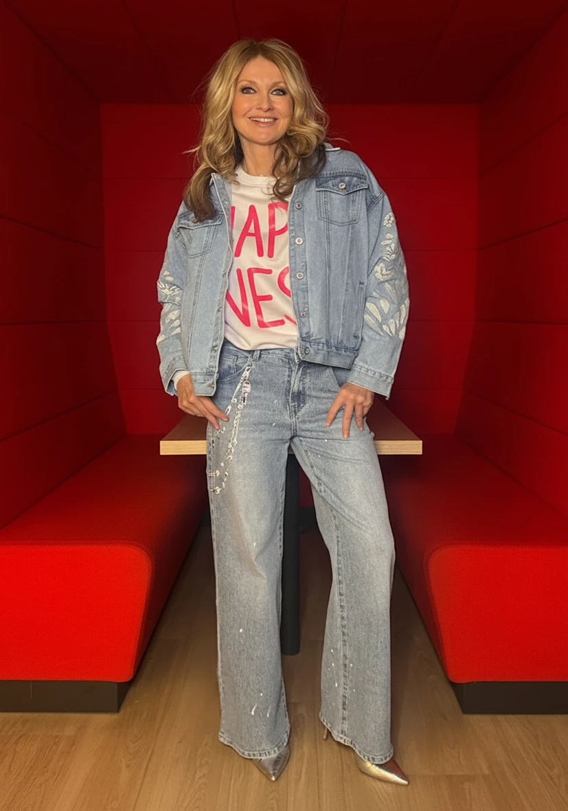 Klassische Bluejeans im 5-Pocket-Style mit leichter Waschung. Die seitlich am Bund aufgedruckte Zierkette mit aufgesetzten Perlen setzt einen modischen Akzent. Das leicht ausgestellte Bein und der Relaxed Fit sorgen für eine lässige, bequeme Passform.