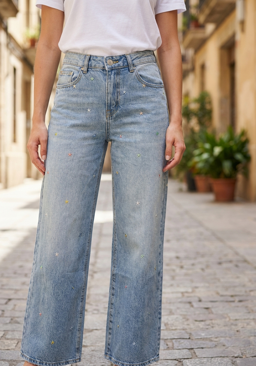 Klassische hellblaue Jeans im 5-Pocket-Style mit strukturierter Waschung und Allover-Blütenstickerei. Das gerade geschnittene Bein und der Relaxed Fit sorgen für einen lässigen Look und hohen Tragekomfort.