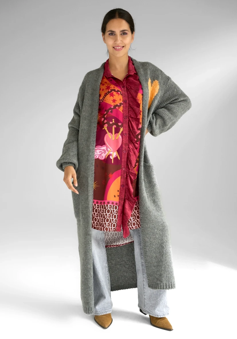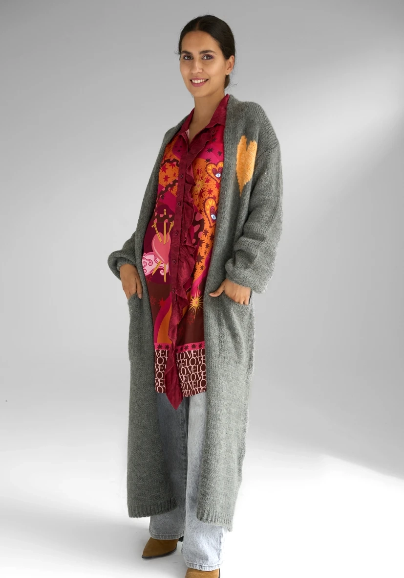 Long Cardigan Multicolor Heart – grey