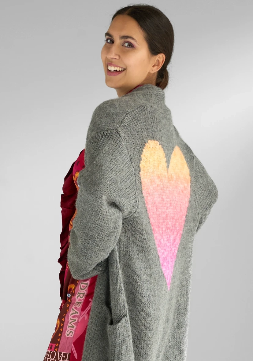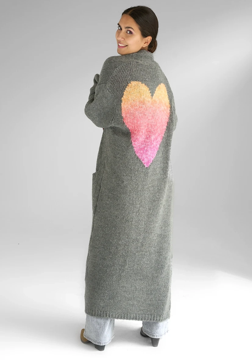 • Langer Cardigan mit Herz-Motiv am Rücke