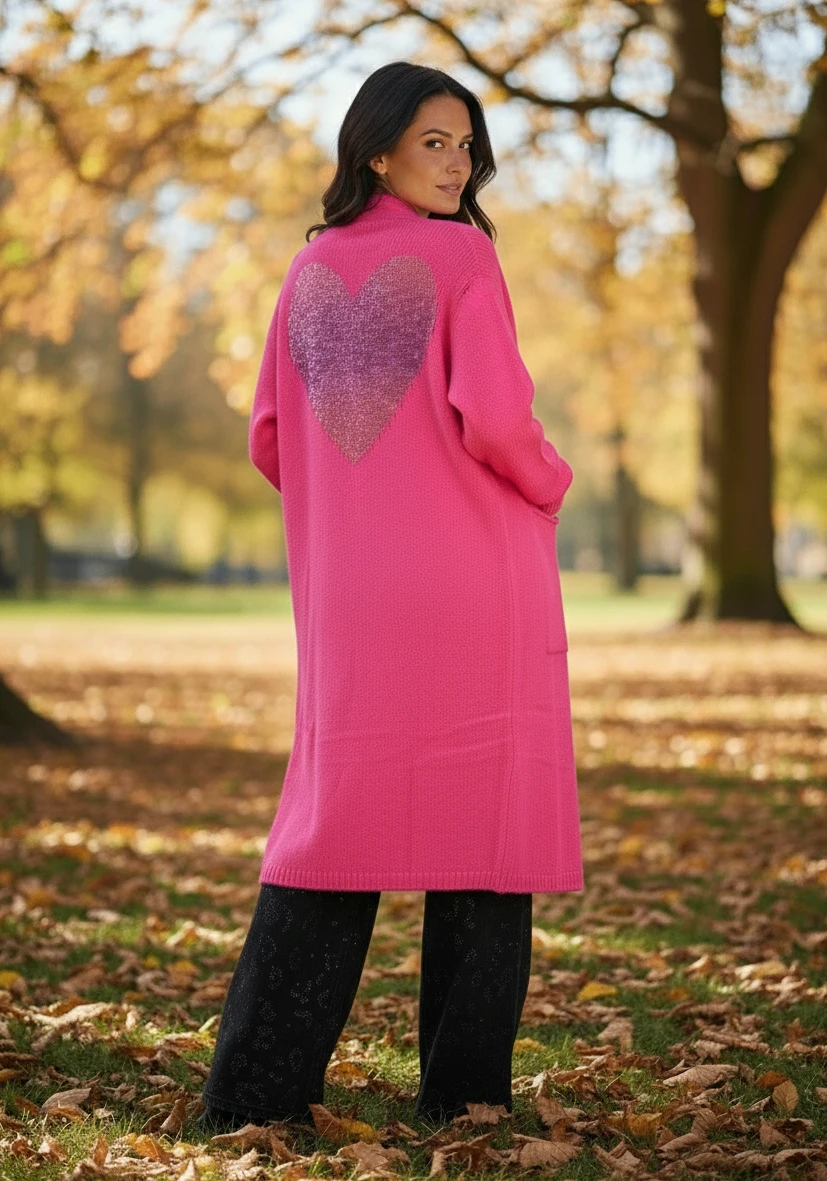 • Langer Cardigan mit Herz-Motiv am Rücken