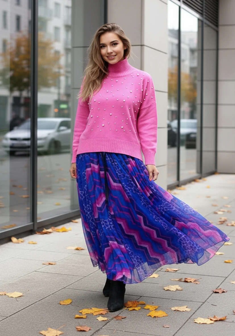 Weiter Maxi-Rock aus Tüll mit feinen Faltendetails und transparentem Oberstoff im Zic-Zac-Muster. Der Gummizugbund mit Zier-Bändchen sorgt für bequemen Sitz und verspielten Akzent. Luftig, elegant und perfekt für feminine Looks.