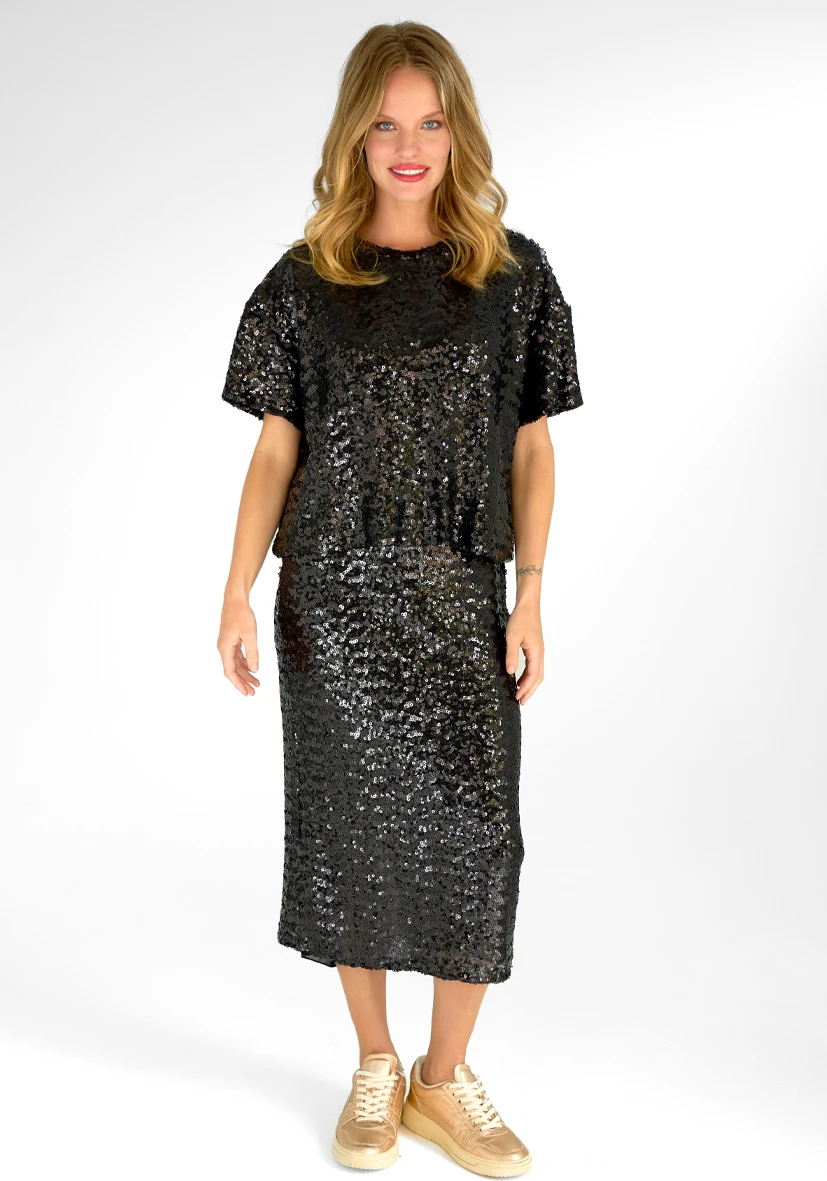• schmaler Rock mit funkelnden Pailletten besetzt