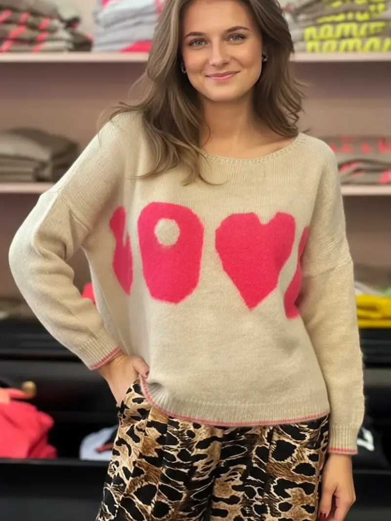 V-Neck T-Shirt L(i)ebe Strass - rose