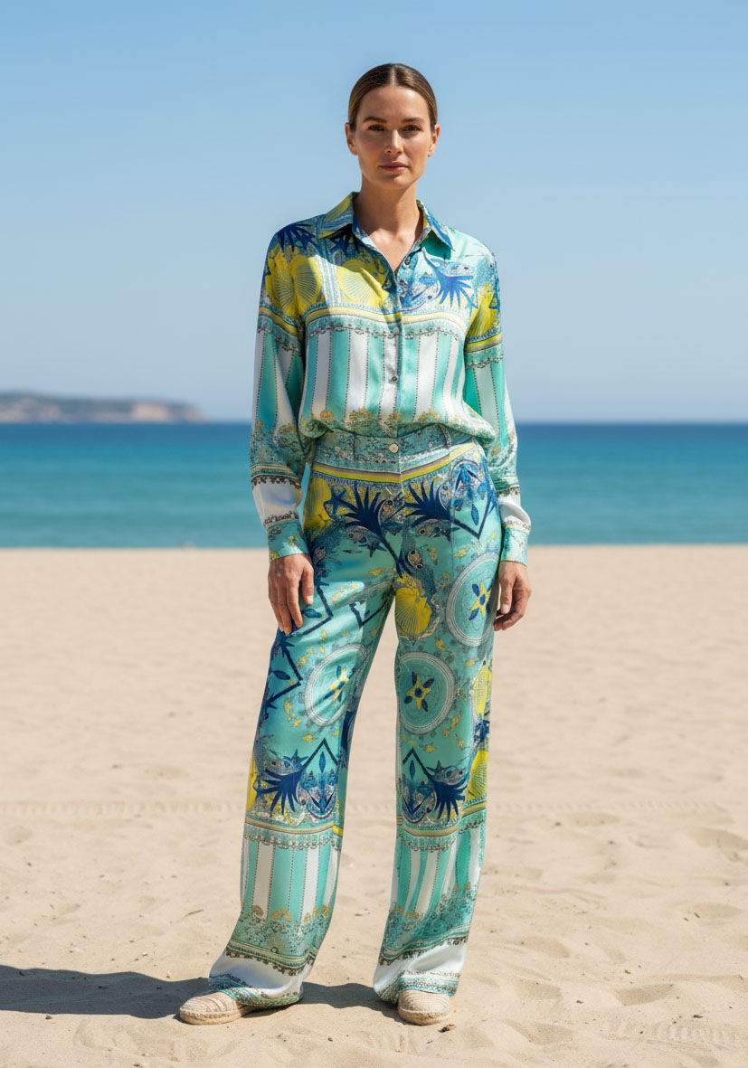 Luftiges Design aus hochwertiger Viskose mit seitlichen Taschen. Breiter Bund mit elastischer Raffung am Rücken für einen taillenbetonten Sitz, das weite Bein sorgt für eine fließende Silhouette.
