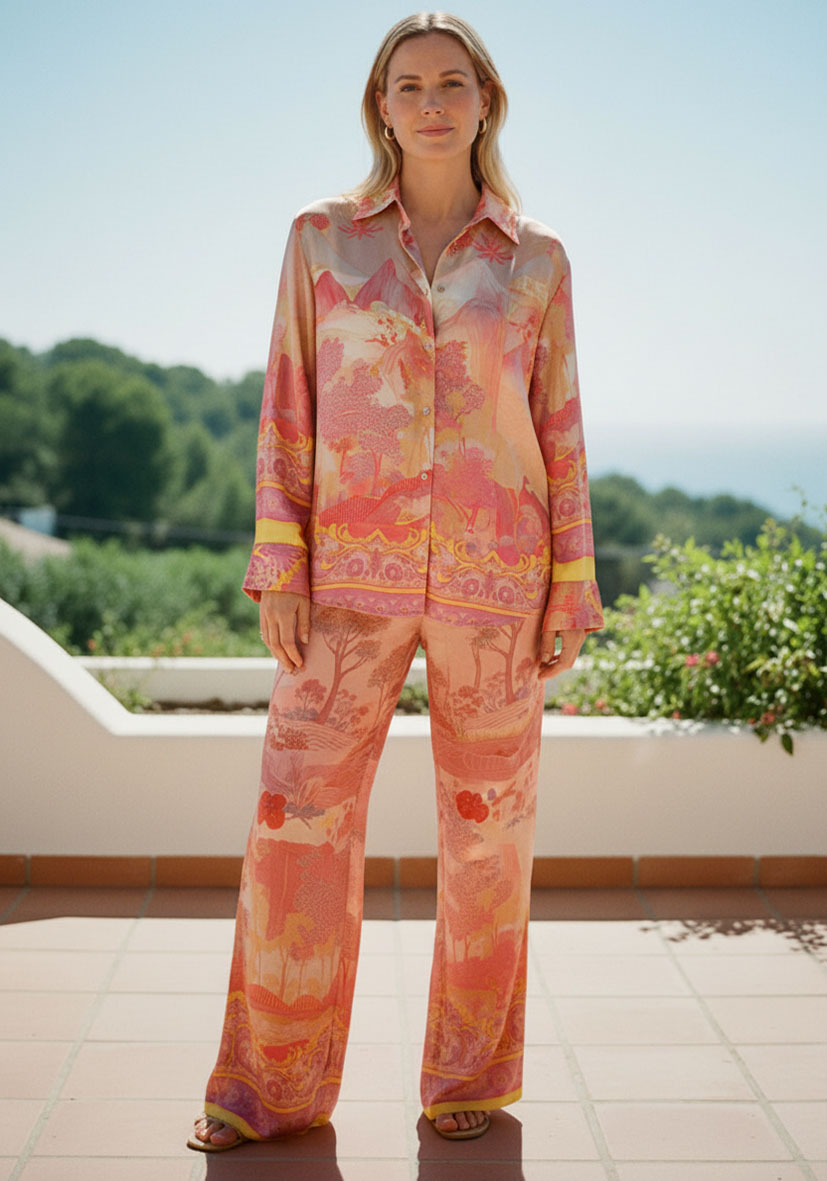 Luftiges Design aus hochwertiger Viskose mit seitlichen Taschen. Breiter Bund mit elastischer Raffung am Rücken für einen taillenbetonten Sitz, das weite Bein sorgt für eine fließende Silhouette.