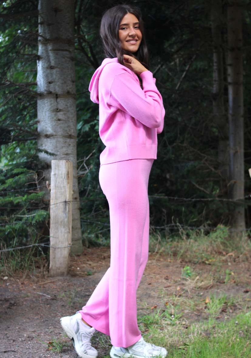 lässig geschnittene Pants, Strukturstrick an Saum und Hosenbein, elastischer breiter Bund, pink, 50 %Viscose, 28 % Polyester, 22 % Nylon