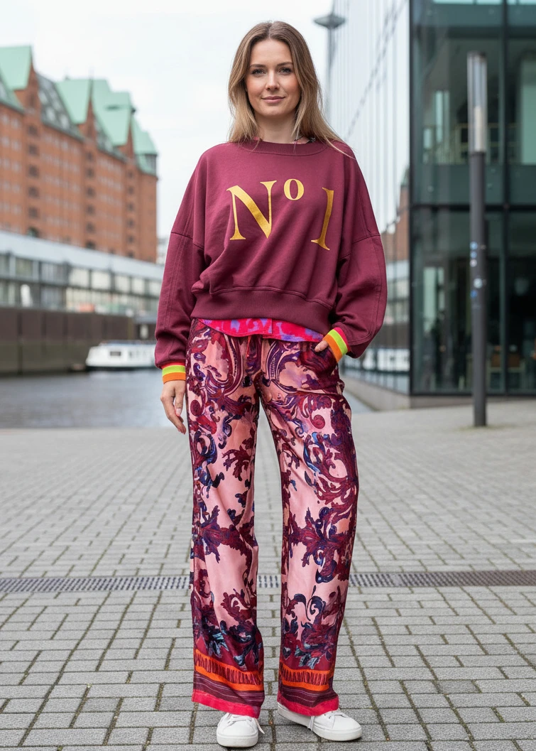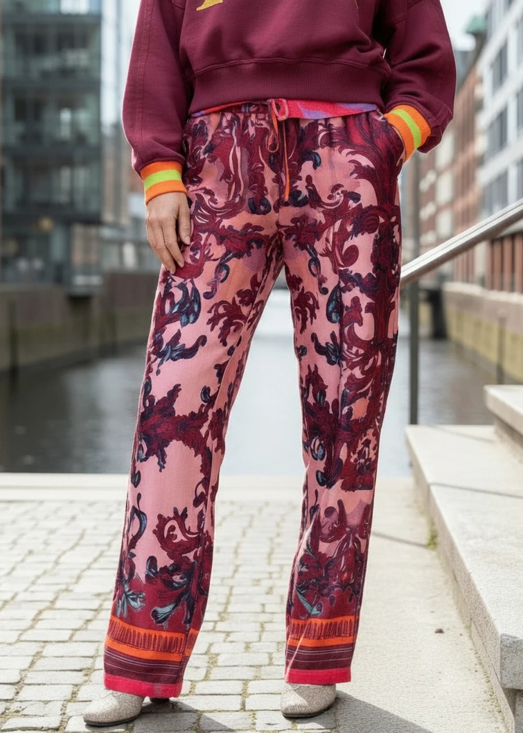 Weich fließende Viskose in lässiger Passform. Das weite Bein, der elastischem Bund und seitlichen Eingrifftaschen kombinieren Stil und Tragekomfort perfekt. Der lockere Schnitt, ab der Taille formt eine schöne Körpermitte.