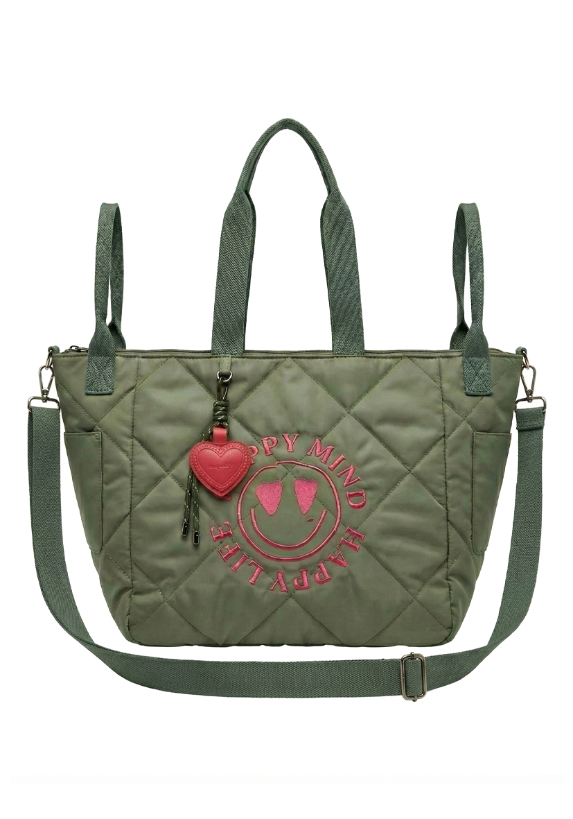 Tasche im Shopper-Style mit großflächiger Stickerei und hübschem Herzchen-Anhänger mit Miss Goodlife Prägung. Die Tasche ist sicher mit einem Reißverschluss verschließbar und bietet mehrere Innenfächer für optimalen Stauraum. Perfekt für den Alltag, Shopping-Tour oder als Weekender.