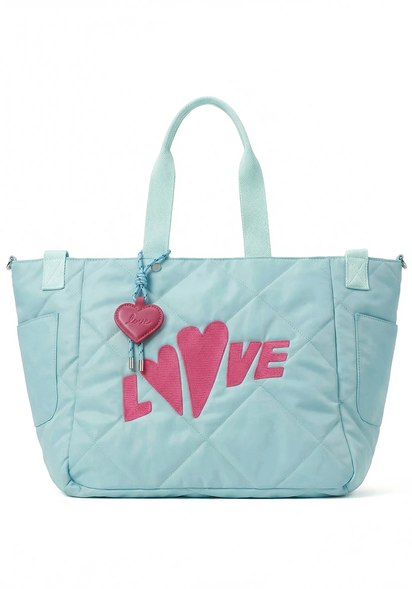 • gesteppte Tasche in hellblau mit großflächiger Stickerei