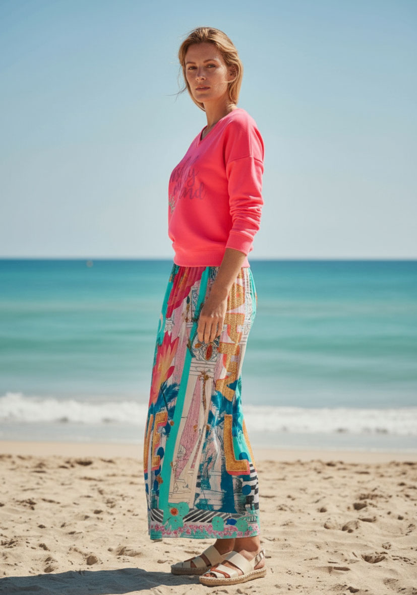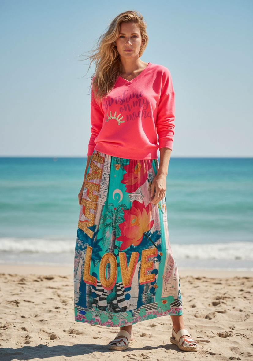 Luftiges Rock aus hochwertiger Viskose mit seitlichen Eingrifftaschen. A-Linien Schnitt mit Gummizug für einen taillenbetonten, bequemen Sitz.