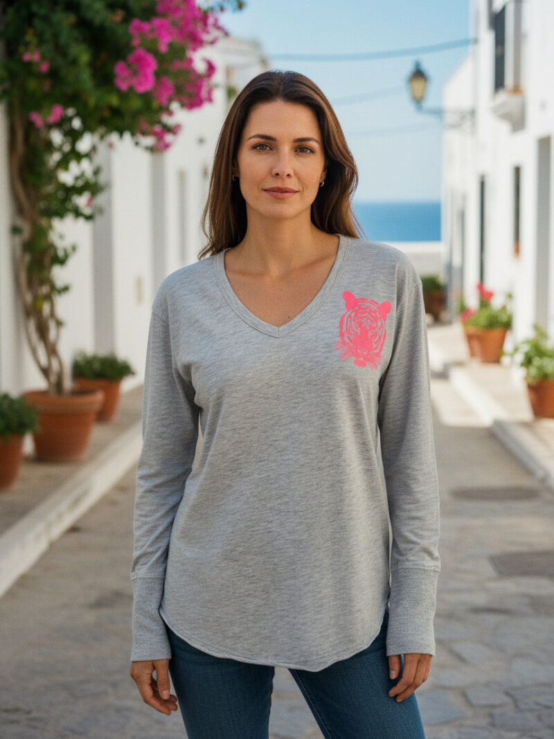 Lässiger Sweater in Neronoange mit Rundhals-Ausschnitt und auffälliger Pailletten-Applikation vorn. Breite Bündchen, überschnittene Schultern und leicht oversize Passform sorgen für stylischen Komfort. Perfekt für trendige Casual-Looks.
