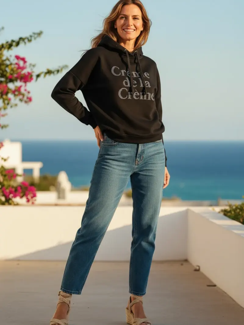 Modisches Shirt mit Rundhalsausschnitt, großflächiger Strass-Applikation vorn und auffälligem Neon-Print hinten. Dekorative Ziernähte und breite Jacquard-Bündchen runden den trendigen Look ab.