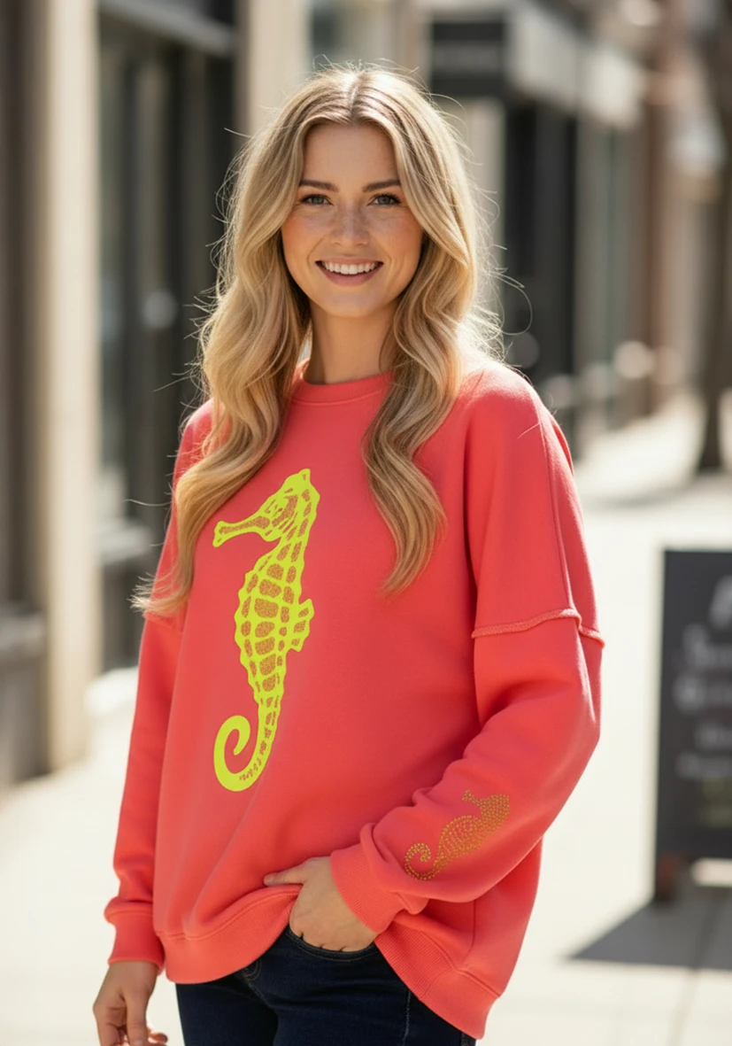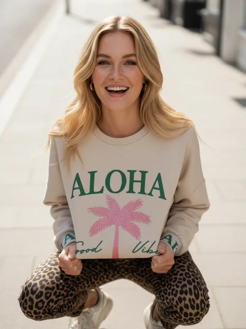 • vorn großflächiger Print mit Strass-Steinchen