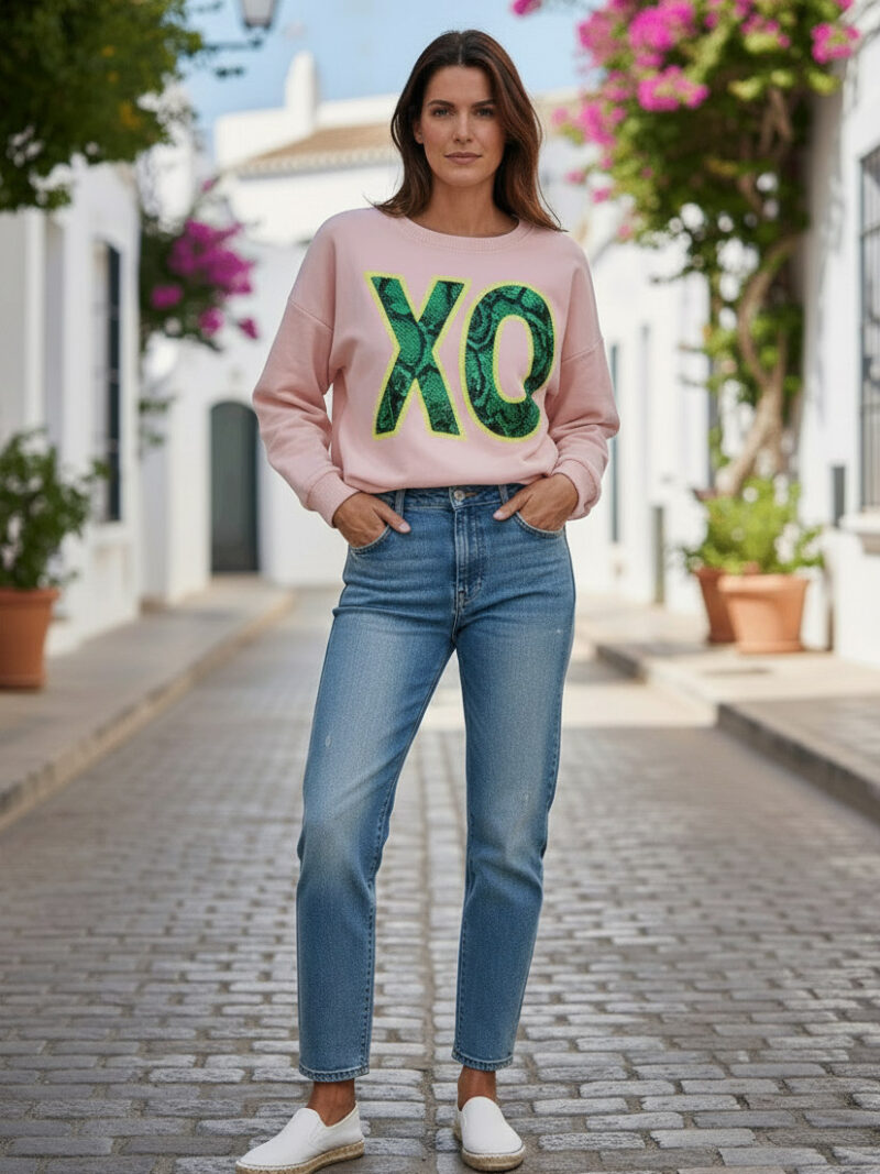 vorderseitiger Druck mit Strass-Steinchen Applikation