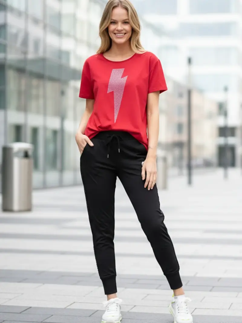 Stylisches Oberteil mit Fledermausärmeln und großem Druck im Vorderteil.