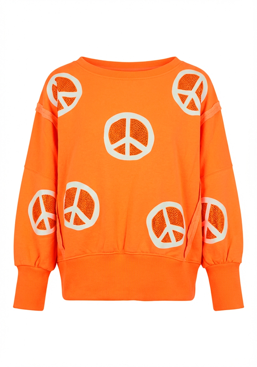 Roundneck Wide Peace Strass – neonorange