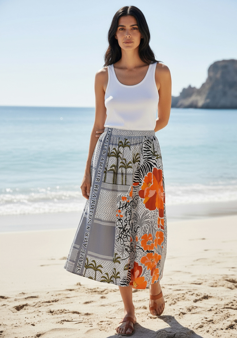 Luftiges Rock aus hochwertiger Viskose mit seitlichen Eingrifftaschen. A-Linien Schnitt mit Gummizug für einen taillenbetonten, bequemen Sitz.