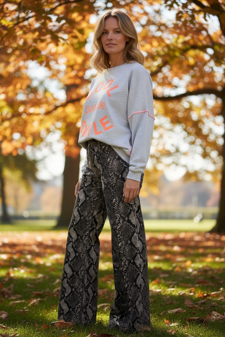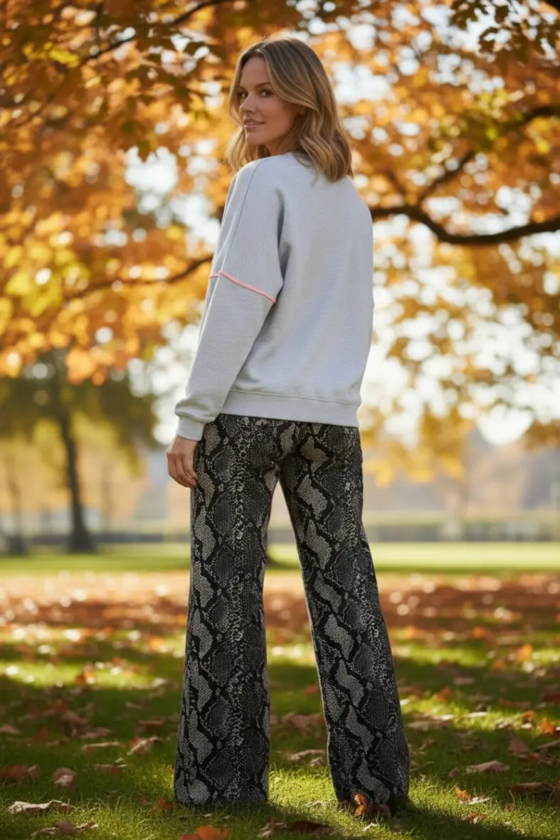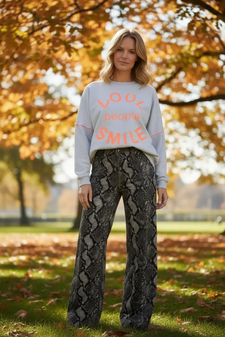 Diese Jeans mit Snake-Print vereint auffälliges Design mit einer lässigen Wide-Leg-Silhouette und einem bequemen High-Waist-Schnitt. Die 5 Pocket Jeans sorgt durch einen Stretch-Anteil für optimalen Komfort.