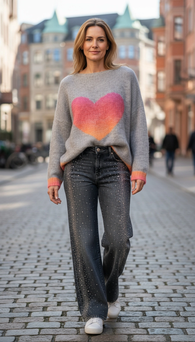 Modische Hose im klassischen 5-Pocket-Style mit funkelnder Strass-Applikation. Der gerade Schnitt und der Stretch-Anteil bieten eine bequeme Passform und hohen Tragekomfort.
