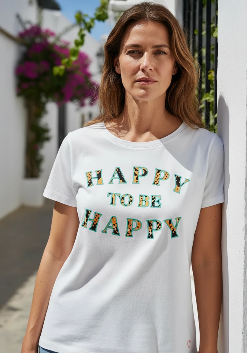 Weißes T-Shirt mit Rundhals-Ausschnitt und großem Type-Print im Snake-Muster auf der Vorderseite. Körperumspielender Schnitt für eine feminine Passform.