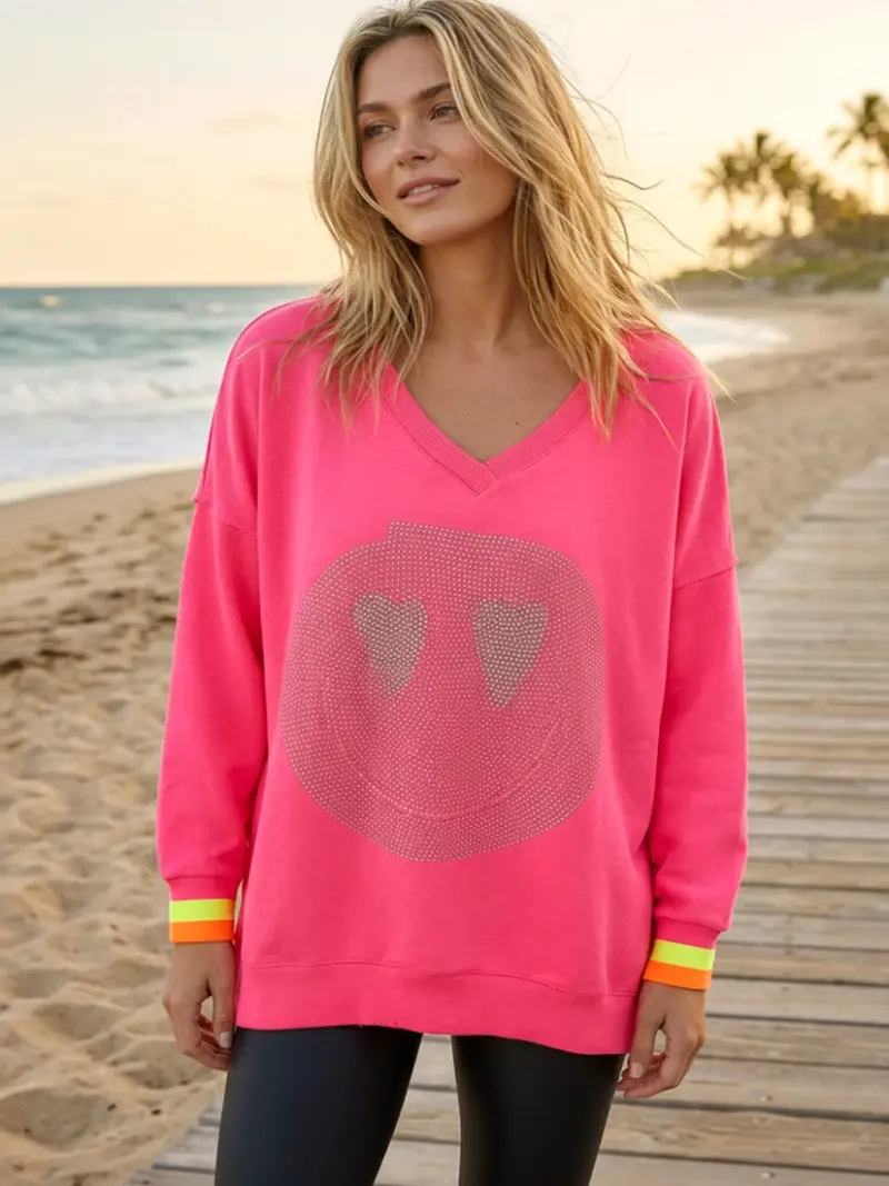 Flauschiger Strickpullover in Hellgrau mit charmanten Herz-Design als Intarsienstrick. Die lockere Passform, der V-Ausschnitt und die weiche Strickqualität sorgen für lässigen Tragekomfort – perfekt für kühle Tage. Gemütslagen.