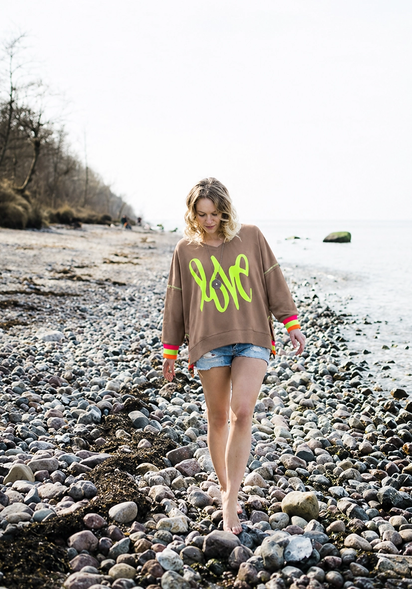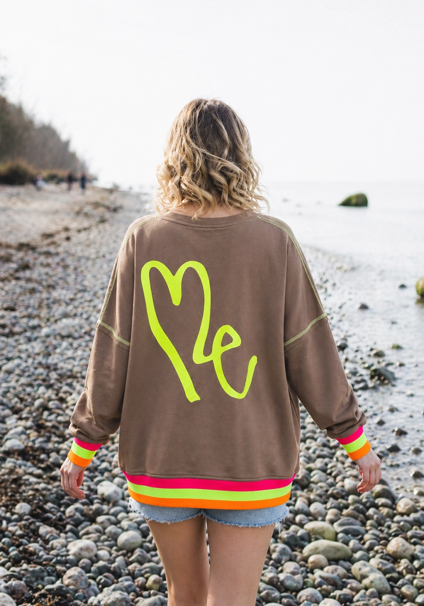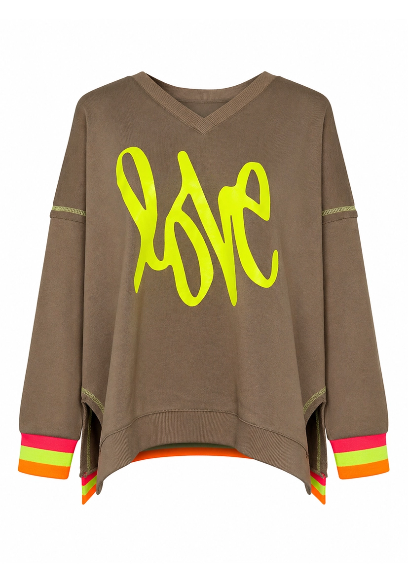 • Vorderseite mit großem Neon-„LOVE“-Print als Eyecatcher