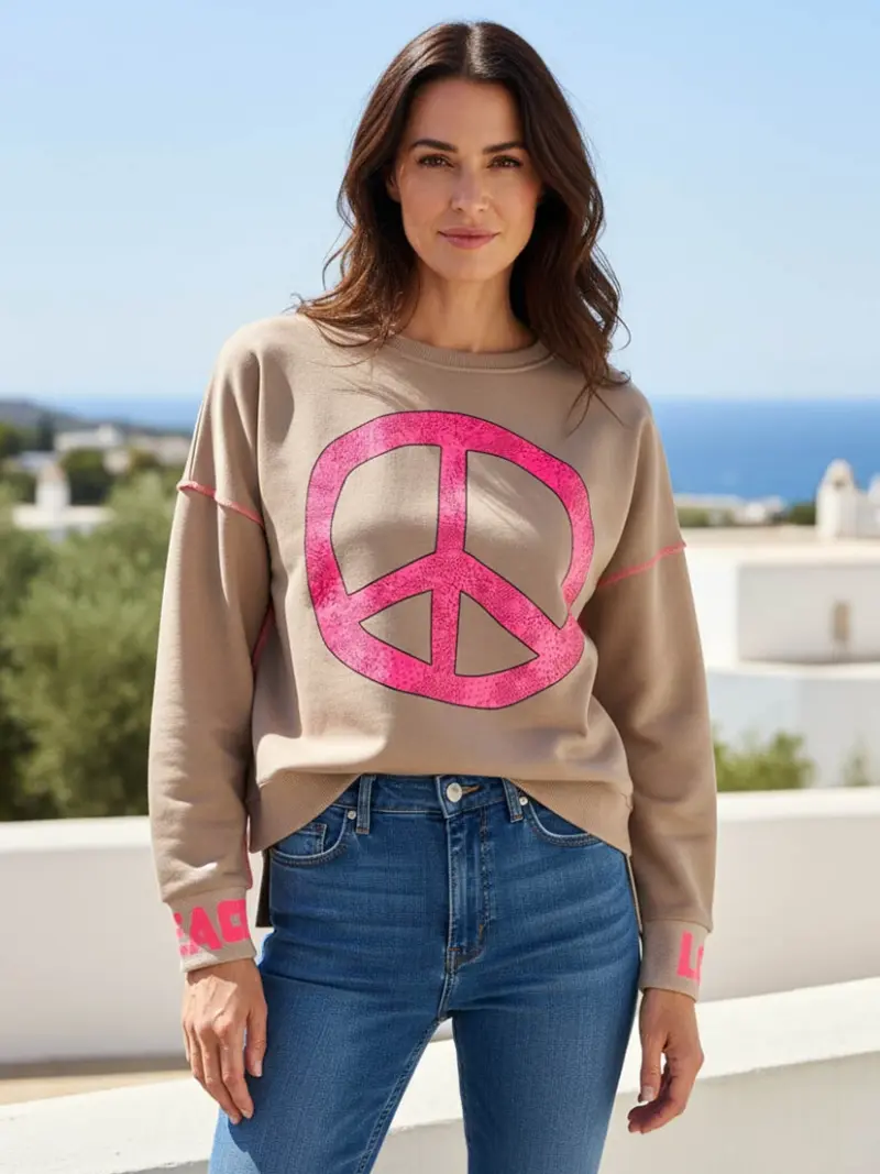 vorn ist ein großflächiger Print mit Paillettenapplikation