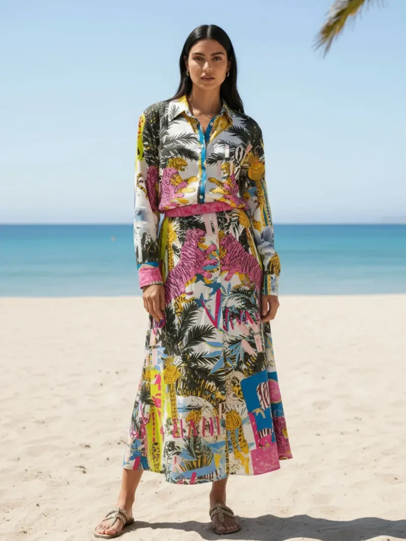 bequeme Wide Leg Pants mit Leo-Druck