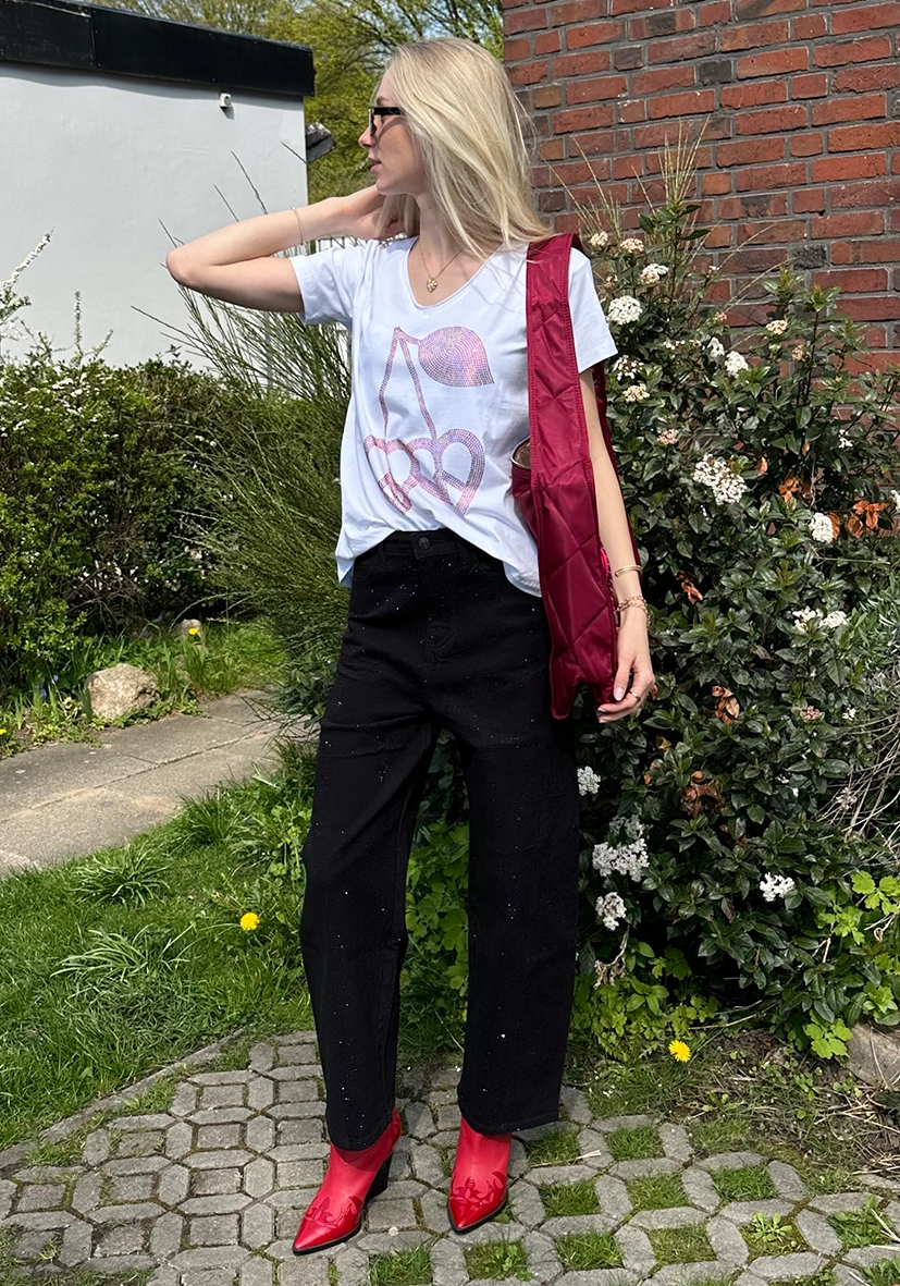 Diese Jeans überzeugt mit einer lässigen Silhouette und einer klassischen schwarzen Waschung. Besondere Hingucker sind die Strass-Applikationen. Perfekt für stylische Casual-Looks mit einem individuellen Twist.