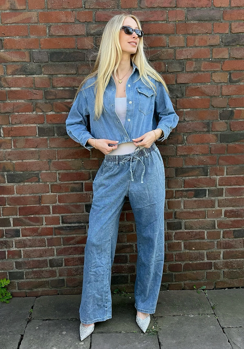 Bu pantolonlar geniş, dökümlü silüeti ve modern, rahat görünümüyle dikkat çekiyor. Hafif denim kumaşı, sıcak günler için ideal, rahat bir his sağlıyor. Çok yönlü ve kolay kombinlenebilir olan bu pantolonlar, gündelik ve şık yazlık kıyafetler için mükemmel bir tamamlayıcıdır.