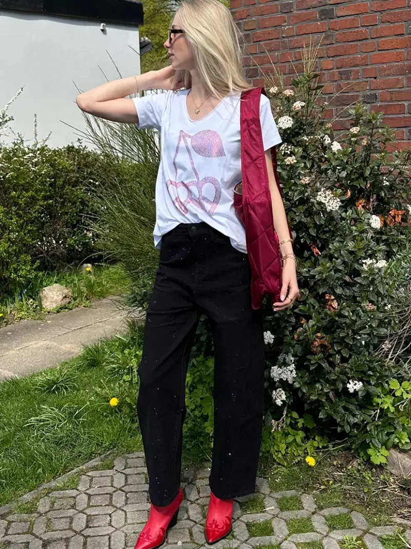 • Yuvarlak Yakalı Öpücük Gücü - neon pembe