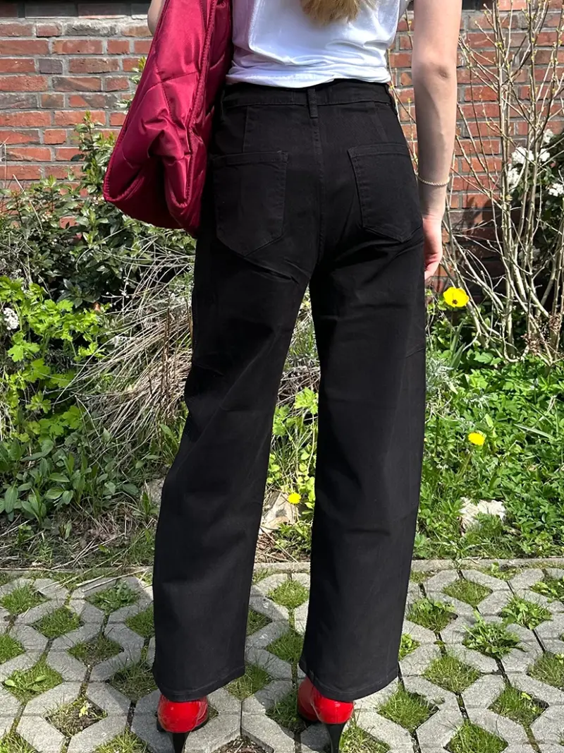 Bol Paçalı Kot Pantolon Nakışı - Mavi